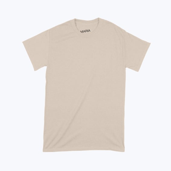 Hand-printed t-shirt. 100% Cotton, colour natural.